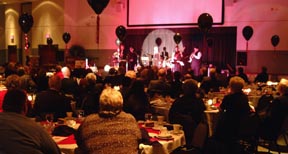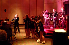 The Scarlets were in the middle of a multi-million dollar renovation and the show we played at the HyVee Convention Center in West DM in the fall was a "command" performance. Principal Tom Lee asked his loyal teachers (Vern & Ed) to bring the boys and be a part of the gala night for alums and boosters. HyVee's CEO Ron Pearson (EHS Hall of Fame grad and a FreeStyle band fan!) donated the facility and was on hand to lend his support to the cause. Fun time: cheerleaders, the EHS jazz band & our "faculty" band!