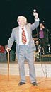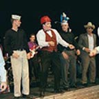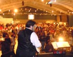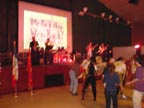 Dave has the crowd well in hand during the opening floor show. We had a "volunteer" on stage driving a bus for "Tie a Yellow Ribbon" & led the audience in the school song during the finale.