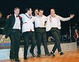 Dancin' up a reception storm with the YMCA, a "snake" dance, and an ethnic trip "round the world."