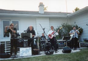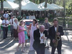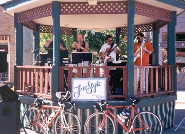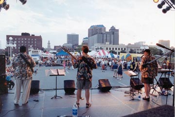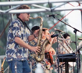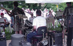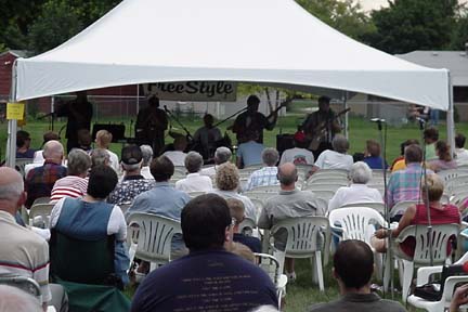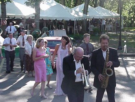 ...we really appreciate those shady tents. Tunes range from Al Jarreau to Duke Ellington and points in between. Lots of requests ... but we keep playing anyway! The audience enjoys refreshments and...