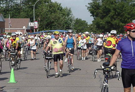 Great party...sad occasion. A Ragbrai veteran, Moran was a casualty of the Trade Center attack and many Iowa friends and riders supported the family with a dance party.